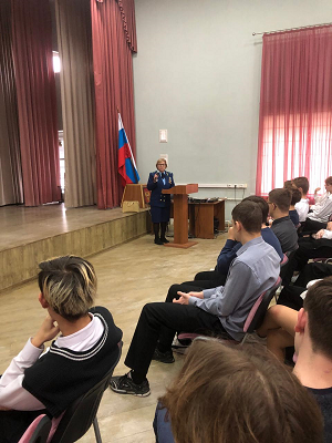 7 ноября такая встреча была проведена с учащимися старших классов МБОУ "Школа №73" г. Рязани, на которой член Совета ветеранов, старший советник юстиции Любовь Ивановна Обухова довела до сведения подростков информацию о правовых последствиях незаконного потребления и распространения наркотических и психоактивных веществ, привела конкретные примеры из своей профессиональной деятельности.